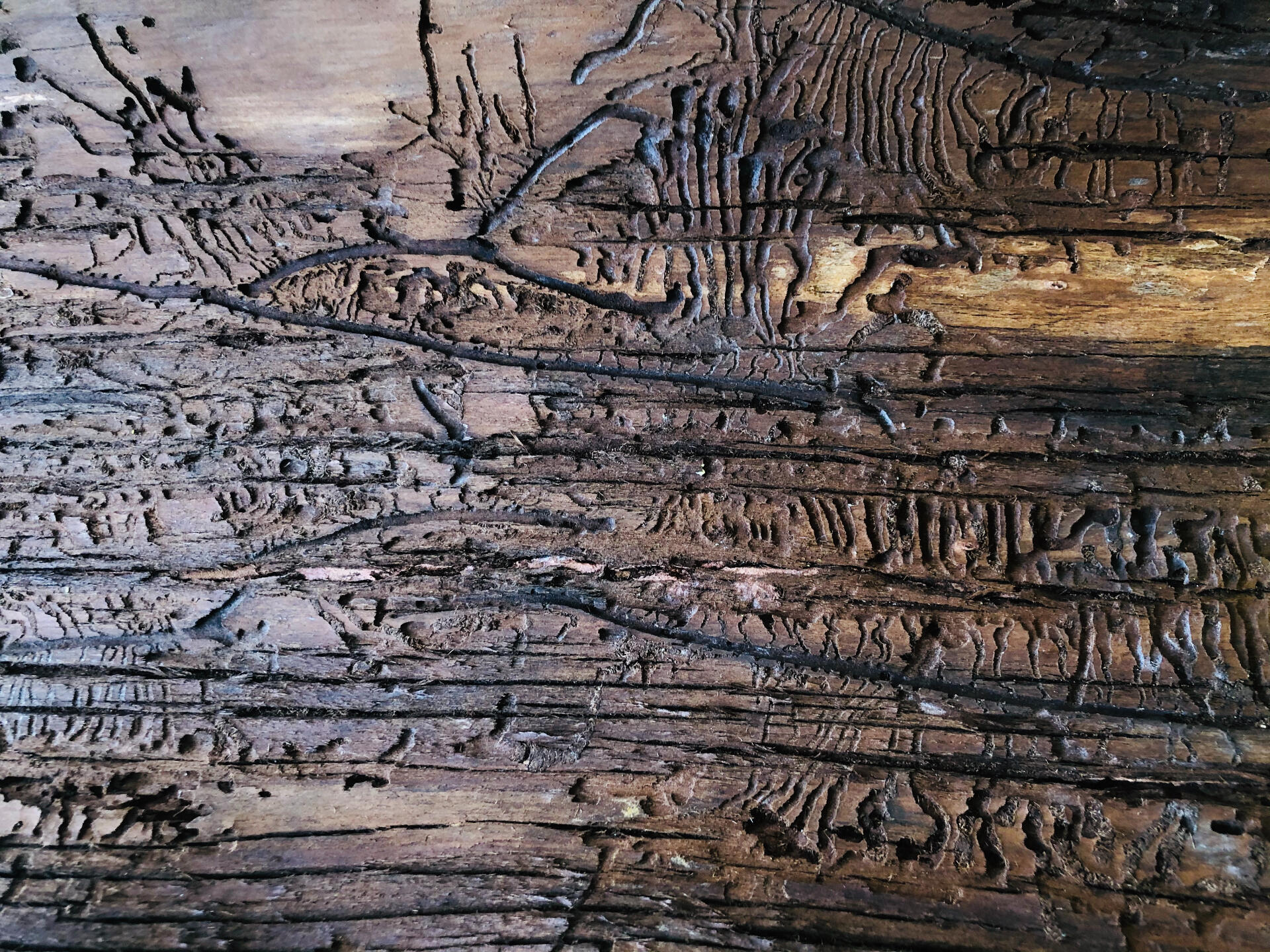 Recent liepen we door de bossen in de Achterhoek waar, door droogte de berkenbossen en naaldbomen, hele stukken bos neergaan of bomen sterven omdat de boomschors wordt verorberd door de Ips Typographus, de Letterzetter. Deze kever/insect schrijft over de eigen tijd. De inscripties en hun verslagen behandelen alle onderwerpen in hun teken- en schrijfstijl en in ons beeld. Het zijn eigenlijk taal- en betekenismallen, die ontstaan nadat Ips Typographicus intrek in de schors heeft genomen. Hun taal zijn mobiliteitskanalen, geboorteplekken en verblijfplaatsen in een geïntegreerde typografie. De kevers schrijven over de wil, over de staat, het kapitaal, verlangen, arbeid, over architectuur, semiotiek en over informatie en alle verbindingen daartussen. Deze grottekeningen uit de Bossen van Bergh zijn gecodeerde boodschappen over de kever, over ons mensen, over alle levende systemen, over de plaatsen en over de tijd.